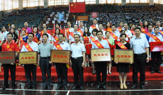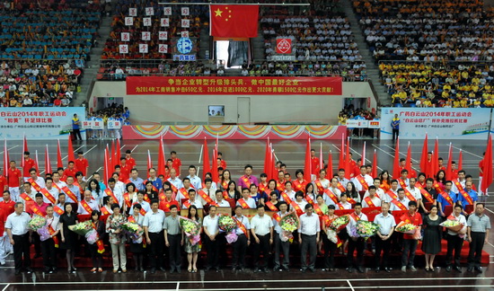 526日下午,廣藥集團在二沙島廣東體育館舉行了2014年“五一”表彰暨廣藥白云山職工運動會開幕式,充分展現了廣藥白云山員工團結一致、凝聚力量的集體主義觀念,以及學習先進、建功立業的時代風采和強身健體、英姿颯爽的精神風貌。會上,隆重表彰了王文楚同志等10名“廣藥白云山勞動模范”、李錦云同志等50名“廣藥白云山先進生產工作者”,授予和黃中藥等5個單位“廣藥白云山先進集體”稱號和奇星藥業一車間等10個科室、班組“廣藥白云山工人先鋒號”稱號。